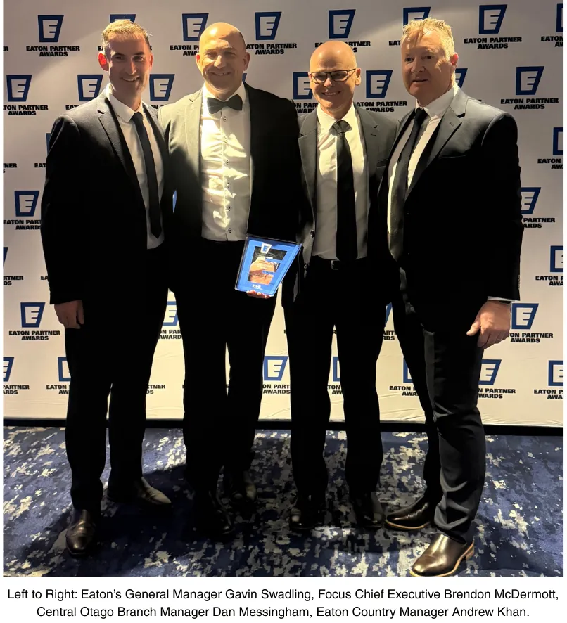 The award recognises Focus’ strong partnership with Eaton and the results achieved over the past year, including 26% year-on-year growth and continued collaboration in delivering reliable power management and infrastructure solutions to businesses across New Zealand.